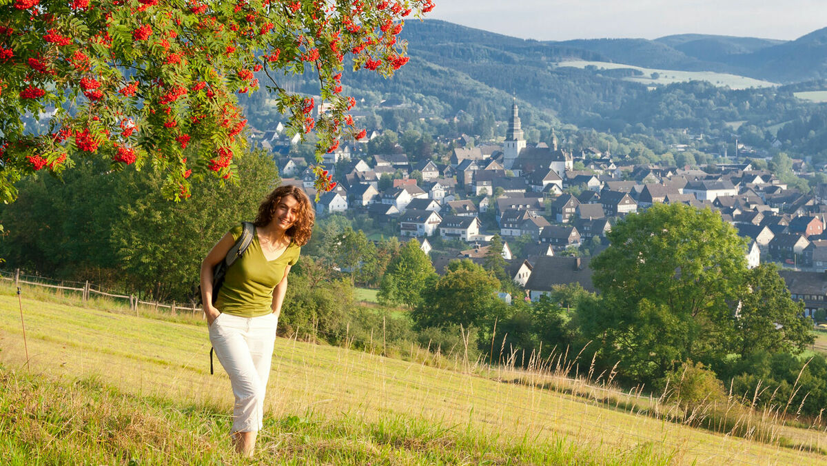 Das Hotel Sauerländer Hof ist ideal gelegen für Wanderer: mitten in Hallenberg, doch mit direkter Anbindung an Pfade ins Rothaargebirge.