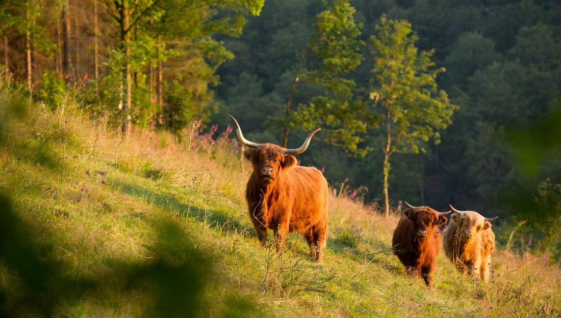 Im Folgenden gelangen Sie zur 8. Station. Diese zeigt die Eindämmung der Waldentwicklung durch gezielte Beweidung von geeigneten Rinderrassen. Diese Beweidung sorgt für eine höhere Artenvielfalt.
